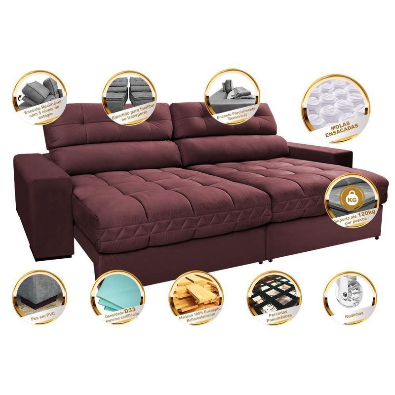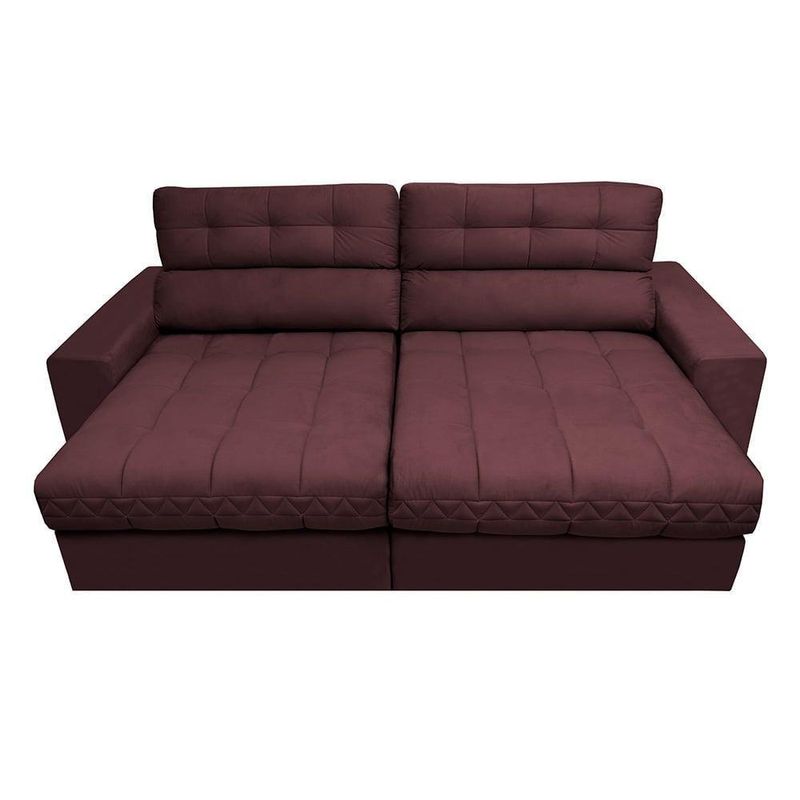 Sofá Retrátil E Reclinável 2,12m Molas Ensacadas Cama Inbox Brasil Velusoft Vinho