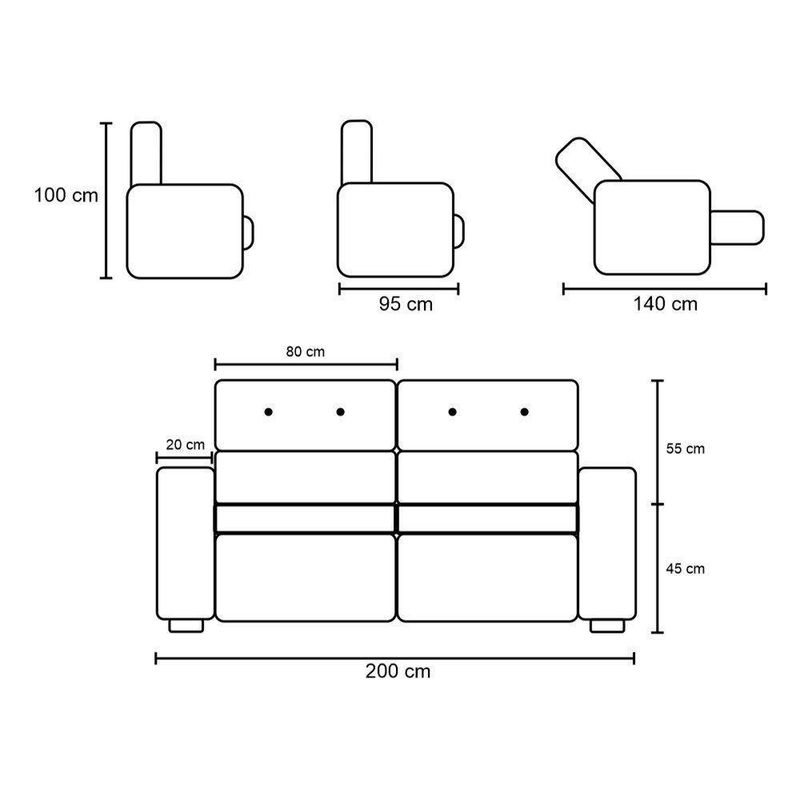 - Encosto: 80 cm x 100cm (L x A).