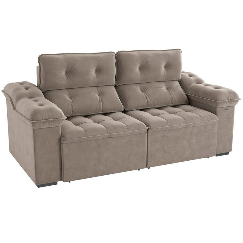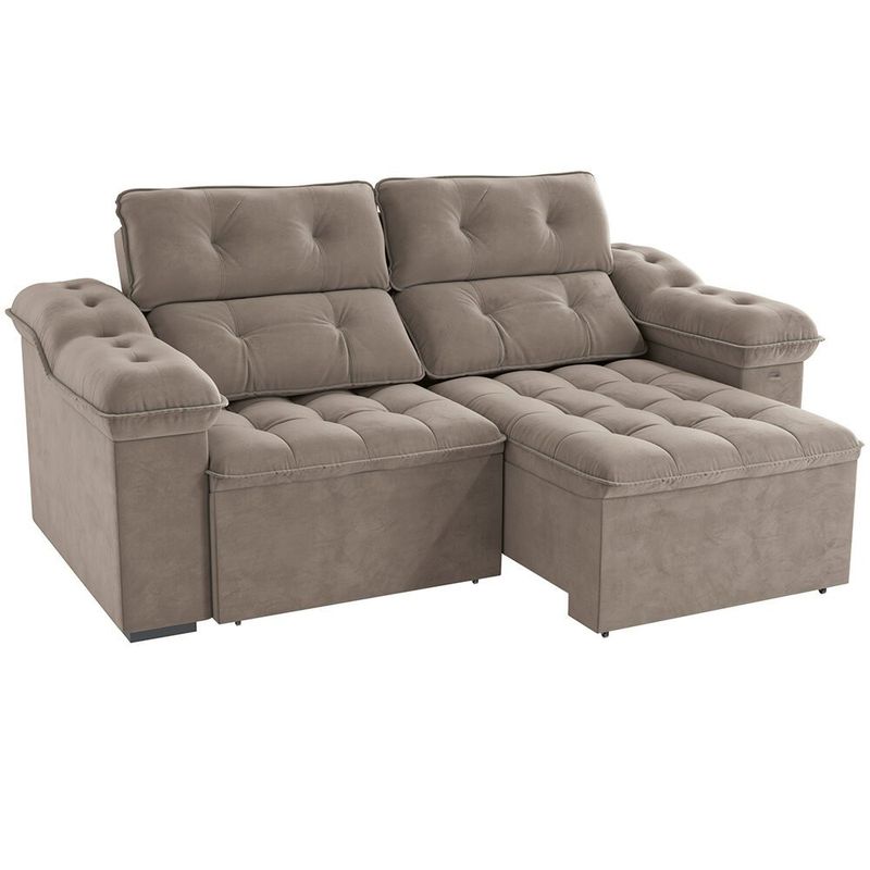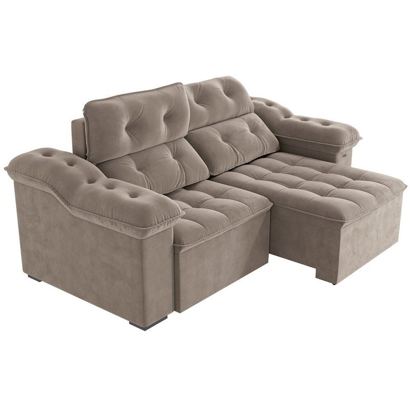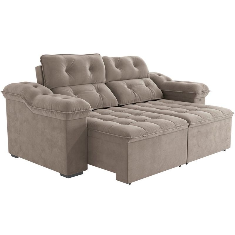 O Sofá Kappesberg Sierra conta com estrutura produzida com madeira de eucalipto, o que garante alta resistência e firmeza. O assento é feito com molas espirais, molas ensacada e espuma, enquanto o encosto flocos e fibra. Feito com Veludo Deluxe, ele promete trazer ainda mais conforto para a sua sala. Dimensões do produto: Altura: 133 cm X Largura: 260 cm X Profundidade assento retrátil fechado: 121 cm X Profundidade assento retrátil aberto: 186 cm.
