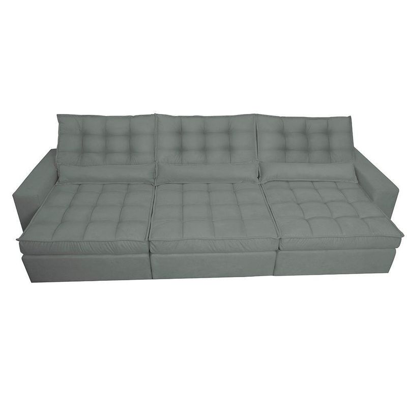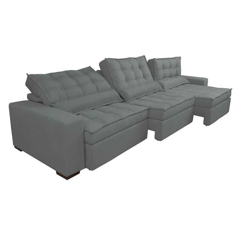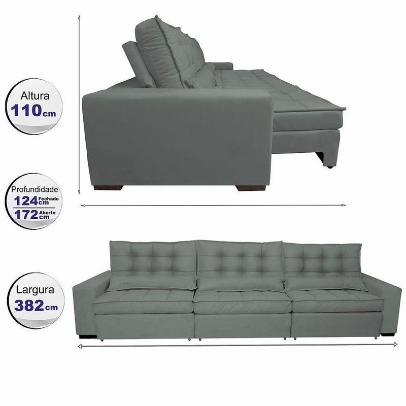 Sofá Retrátil E Reclinável 3,82m Com Molas Ensacadas Cama Inbox Gold Tecido Suede Velusoft Cinza