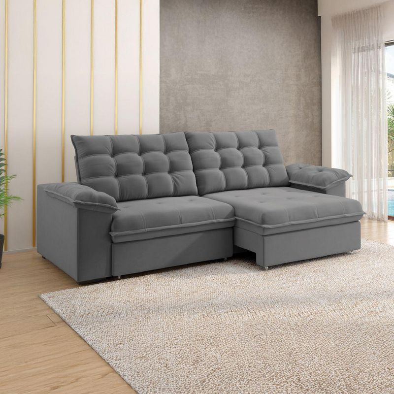 Sofá Retrátil E Reclinável Bipartido 2,90m 5 Lugares Palermo Slim Luizzi Chumbo