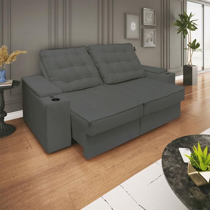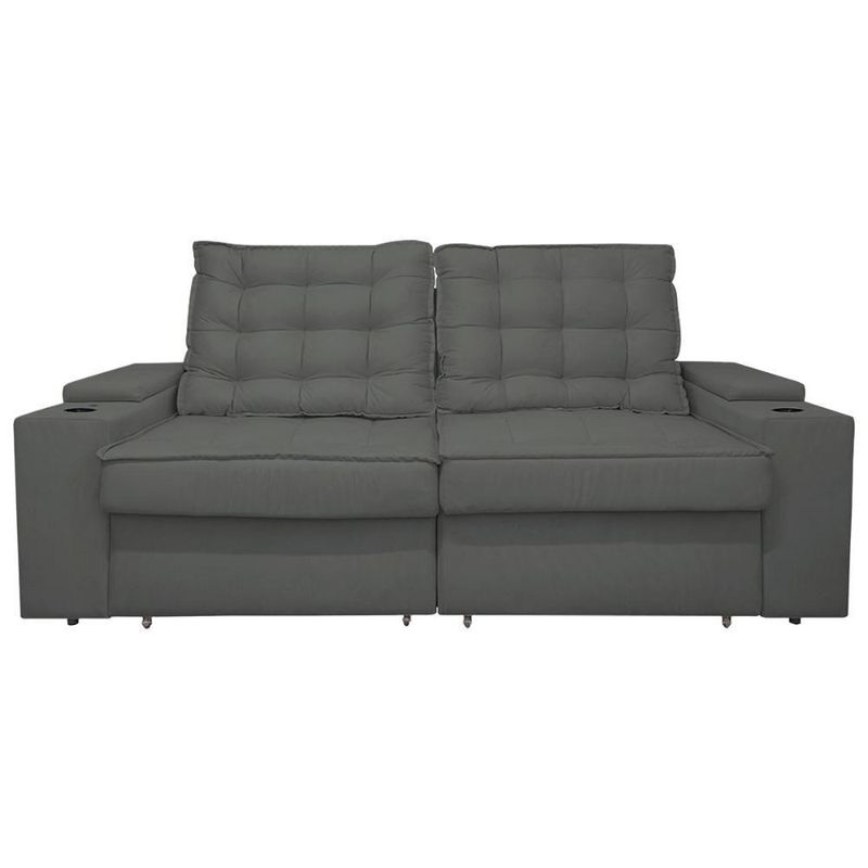 Sofá Retratil Reclinavel 3 Lugares 2,30m Porta Copo USB Cinza