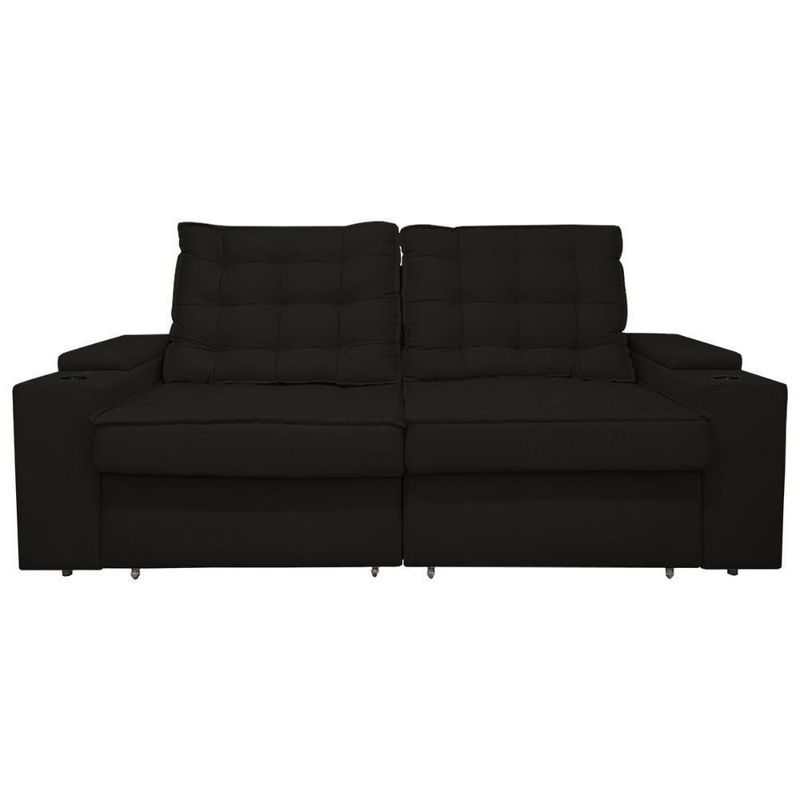 Sofá Retratil Reclinavel 3 Lugares 2,30m Porta Copo Usb Sala Cor:preto Preto