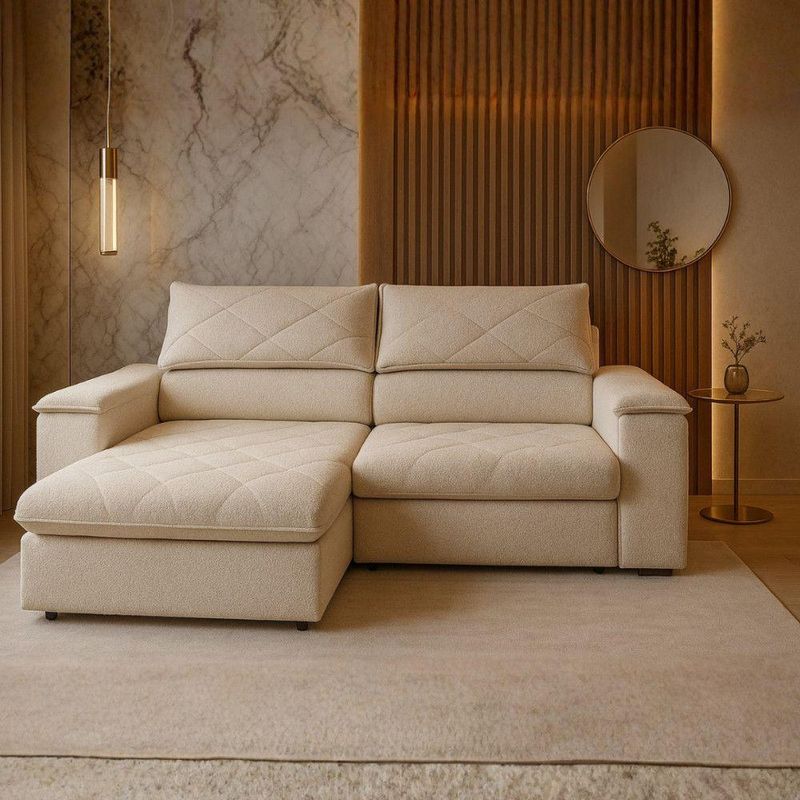 Sofá Retrátil Reclinável Mônaco 2,10 Metros Bouclê Nature