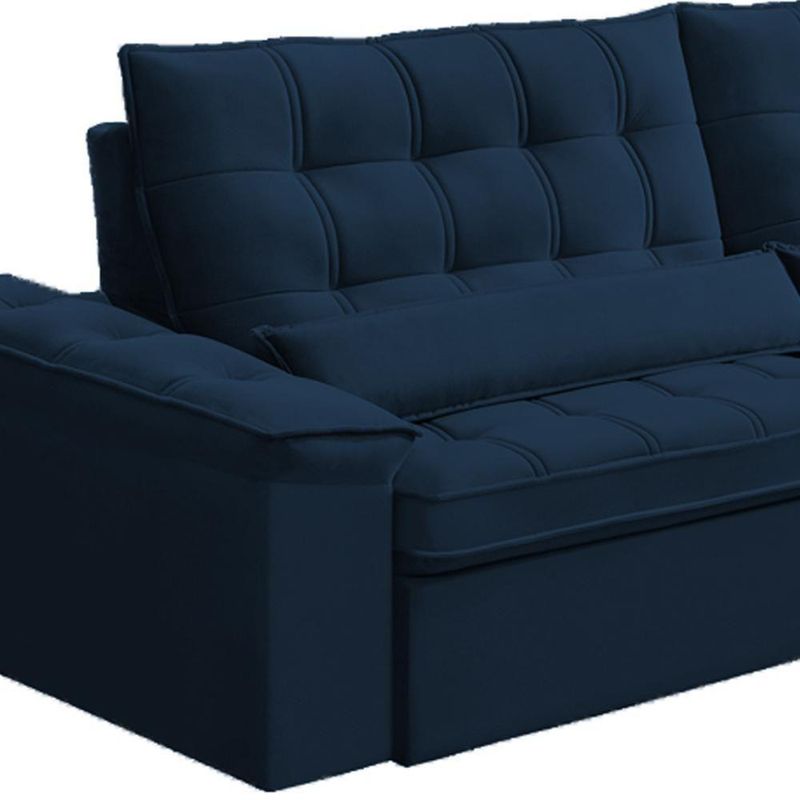 Sofá Retrátil Reclinável Para Sala 4 Lugares 290cm Maresi F04 Veludo Azul - Lyam Decor