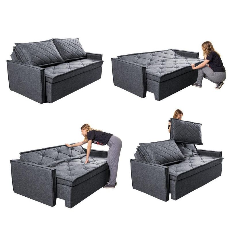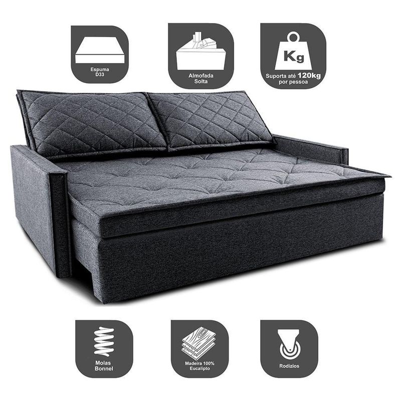 Sofá Sem Caixa Retrátil E Reclinável 1,65m Cama Inbox Loft Linho Cinza Escuro
