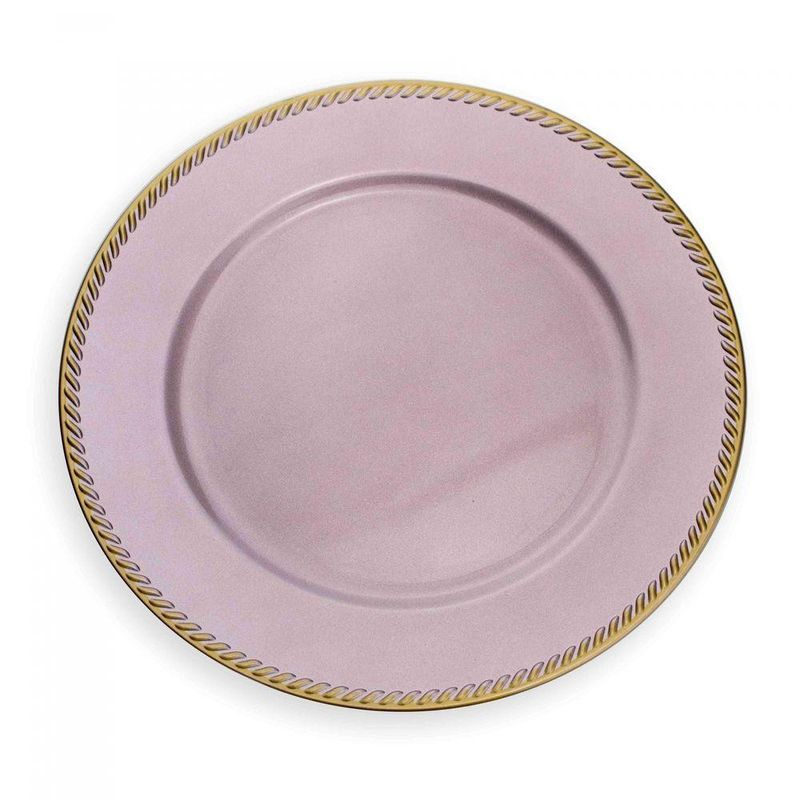 Sousplat De Plástico Rosa E Dourado 33 Cm - D'rossi