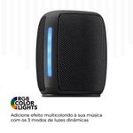Resistência a respingos de líquidos: Com certificação IPX4, o speaker resiste a ambientes úmidos e a respingos de líquidos;
