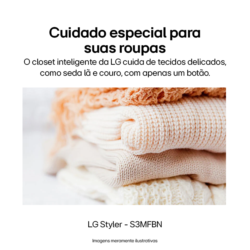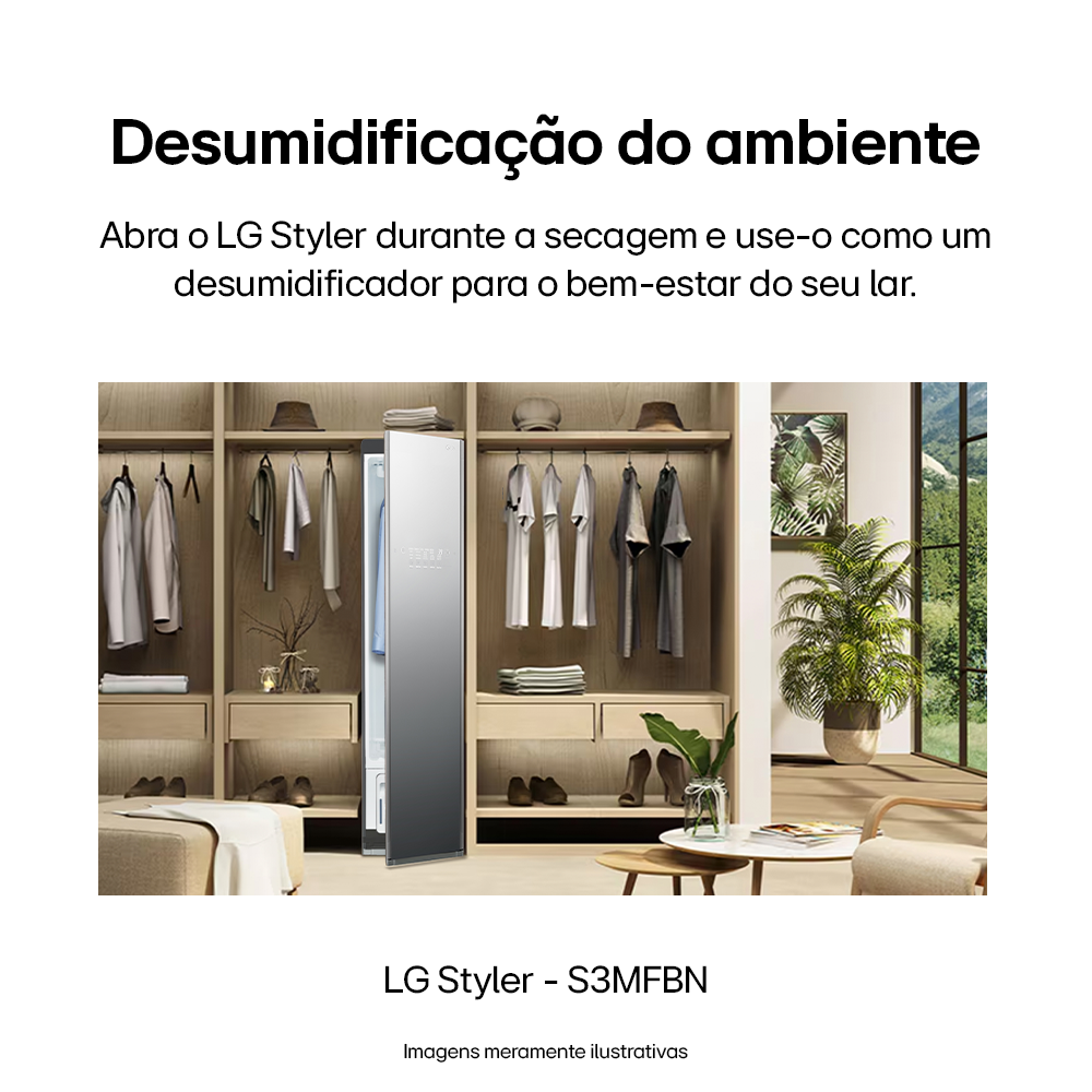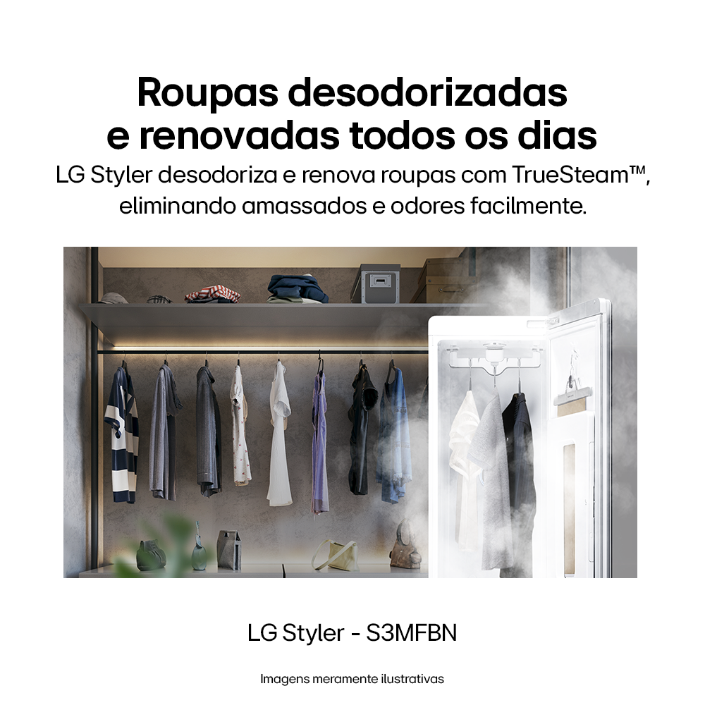 • EletrodomésticosStylerStyler LG Espelhado com Vapor TrueSteam™ S3MFBN