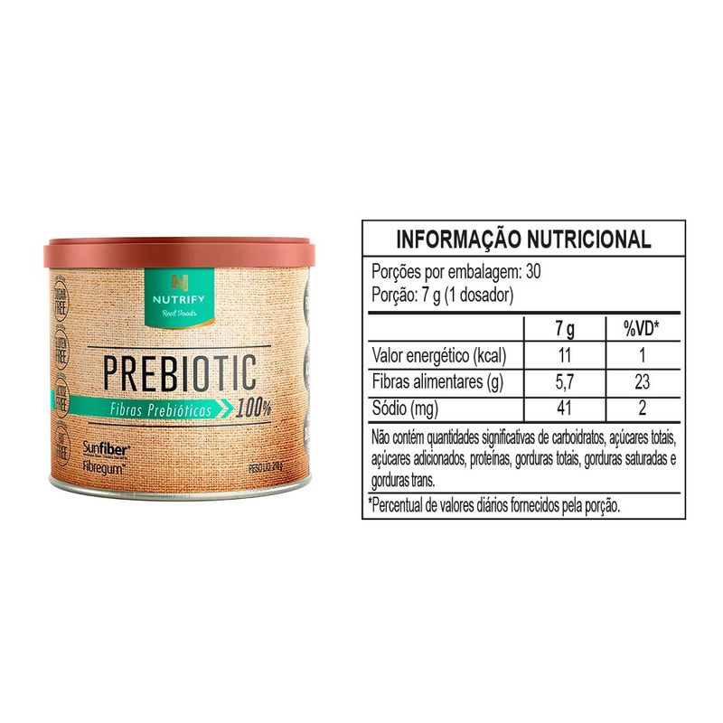 Prebiotic Nutrify conta com 2 excelentes fontes de fibras solúveis prebióticas: goma acácia e goma guar parcialmente hidrolisada, reconhecidas por sua pureza e qualidade, além de não causarem desconforto intestinal. Prebiotic possui sabor neutro, podendo ser adicionado a qualquer bebida ou receitas no seu dia a dia. Um incrível aliado para aumentar o consumo diário de fibras.