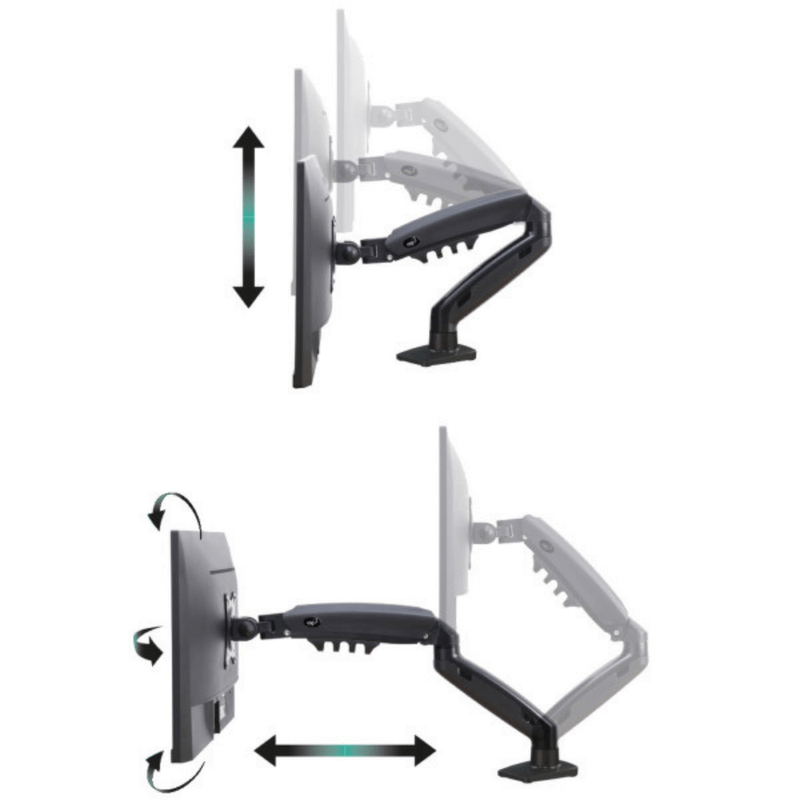 Não sei meu CEPO F80N é um suporte de mesa para 01 (um) monitor, desenvolvido com sistema de braço articulado com amortecedor a gás (pistão), que permite movimentos suaves para um perfeito ajuste de direção e altura. Com o mínimo esforço, posicione o monitor da maneira que desejar, sem a utilização de ferramentas. Possui um design compacto e retrátil, indicado para monitores com peso, sem a base original, entre 2 e 9 kg e compatíveis com padrão de fixação VESA (horizontal x vertical) 75x75 ou 100x100 mm, normalmente encontrado em monitores de 17'' a 35'' polegadas. Possui função estender, girar e inclinar! Ideal para uso em ambientes de trabalho, videoconferências, entretenimento ou jogos.O Kit de acessórios acompanha duas formas de fixação: tipo morsa ou serra copo (parafuso M10).Possui garantia de um ano.