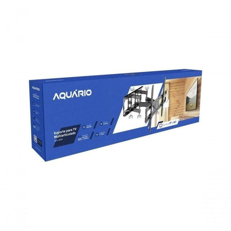 O Suporte Multiarticulado Para TV Universal 37-80 SAV-4600 Aquário oferece uma solução segura e versátil para televisores LCD/LED/Plasma, com capacidade de até 40kg. Seu design de três eixos de articulação proporciona uma ampla gama de movimentos, incluindo ajuste de distância da parede e inclinação de até 15º., além disso, este modelo conta com instalação simples e todos os acessórios inclusos, construído com materiais de alta resistência e possui um organizador de cabos para manter o ambiente limpo e funcional. Ideal para residências, escritórios e consultórios, proporcionando praticidade e segurança em qualquer ambiente. Cor:Preto Material:Aço carbono com tratamento anticorrosão Pesquisa:suporte de tv|suporte|suporte para tv|suporte multiarticulado|suporte para tv|suporte universal para tv|suporte universal|universal - A embalagem contém: 01 Suporte para TV Multiarticulado, com inclinação, Kit de Instalação completo (buchas, arruelas, parafusos ? M4, M5, M6 e M8), Kit de Instalação em Televisores, Organizador de cabos e 01 Manual de Instalação. - Locais para instalação: Alvenaria (parede de tijolo ou bloco) ou painel de madeira/MDF (verificar o peso da TV + painel). - Completo, com um design moderno, além de contar com inclinação e 4 movimentos, este suporte possibilita mais opções para você manter os ambientes organizados e proteger sua TV. Além disso, ele já acompanha todos os materiais de instalação, organizador de cabos, nível bolha e maior distância da parede. - VESA: 200X200, 200X300, 300X200, 300X300, 400X200, 400X300, 400X400, 600x400mm.