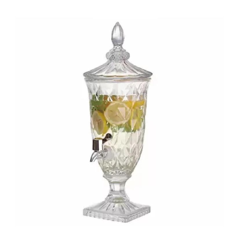 Suqueira Cristal Bebidas Vidro Dispenser 2 Litros Torneira Luxo Vintage Festa Casamento