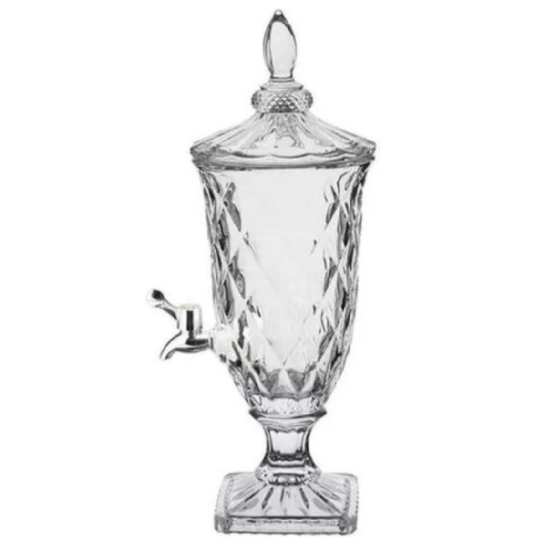 Suqueira De Cristal Dispenser De Bebidas Vidro 2 Litros Com Torneira Luxo Vintage Festa Casamento
