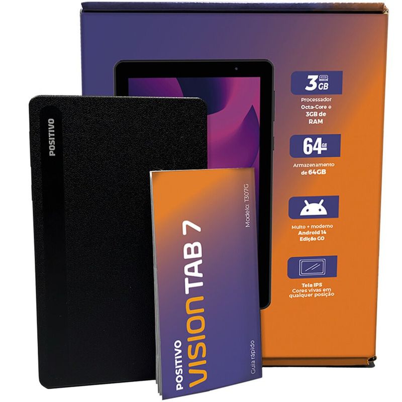 01 Tablet Vision Tab 7 64 GB 7 Octa-Core, Wi-Fi - T30764F Positivo