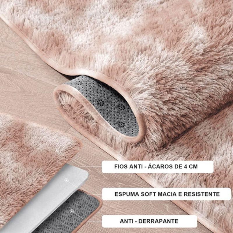 Tapete Sala Felpudo Peludo Mesclado Bege 120 X 200 Cm
