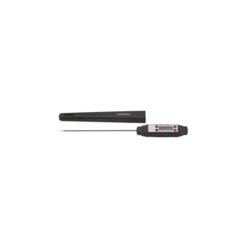ATramontina apresenta nessa linha uma grande variedade de acessóriospara cozinha, tudo para facilitar seu dia-a-dia. Utensílios práticos eque suportam altas temperaturas. Vai ser difícil resistir à beleza evariedade dessa linha.Recomendações de Uso:- Pressione ON/OFF uma vez e o visor mostrará todos os segmentos preenchidos, podendo então fazer a medição da temperatura após 1 segundo. Introduza a HASTE EM AÇO INOX no local onde será feita a medição. Pressione novamente o botão ON/OFF e o termômetro se desligará.