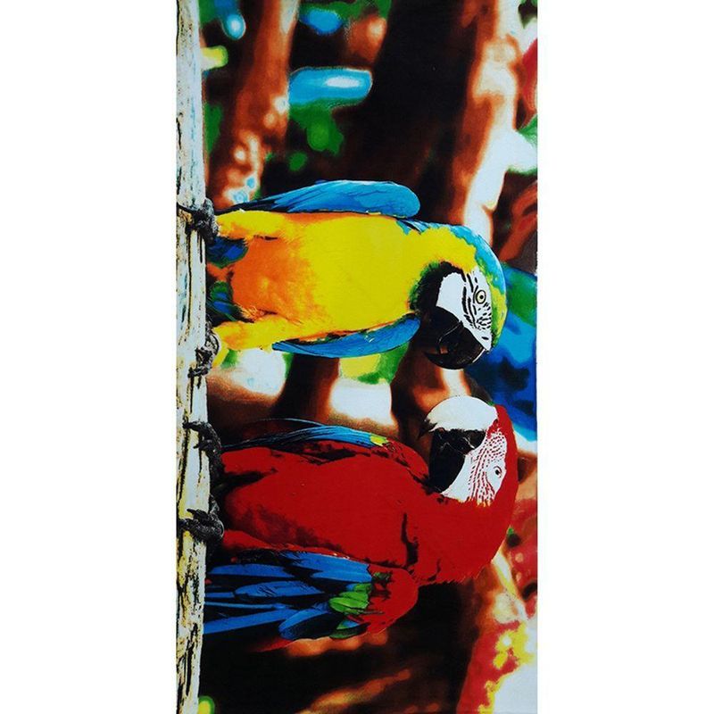 Toalha Para Praia Margex Microfibra Estampada Araras 73cm X 145m Amarela/vermelha