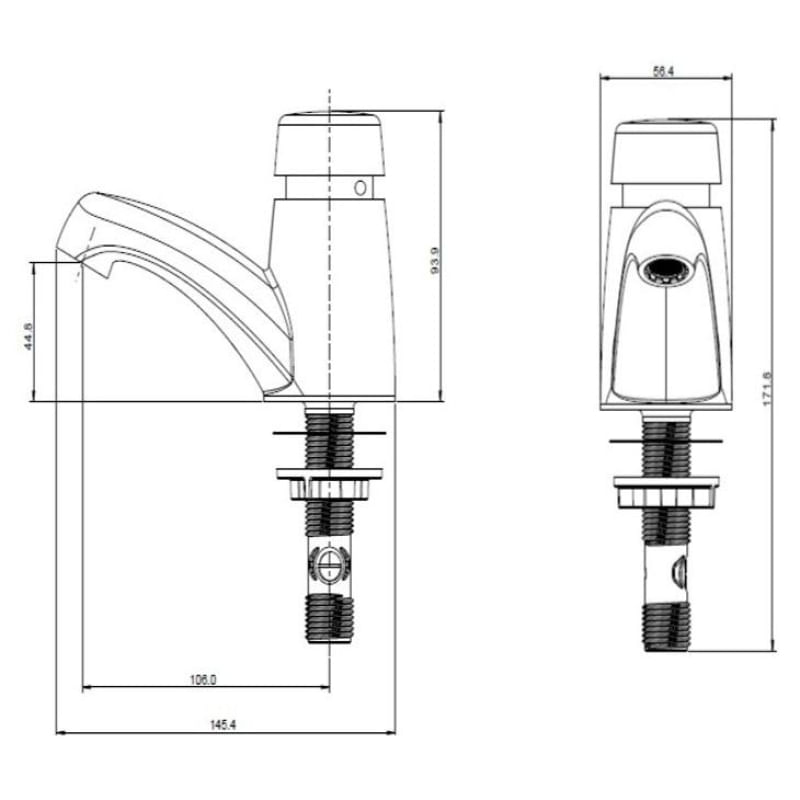 Especificações: Uso: Lavatório; Aplicação: Pia; Volante de metal e fechamento automático; Mecanismo com Vida útil 200.000 ciclos Atende a Norma ABNT - NBR 13713 Material: corpo em plástico; Arejador com sistema antifurto.
