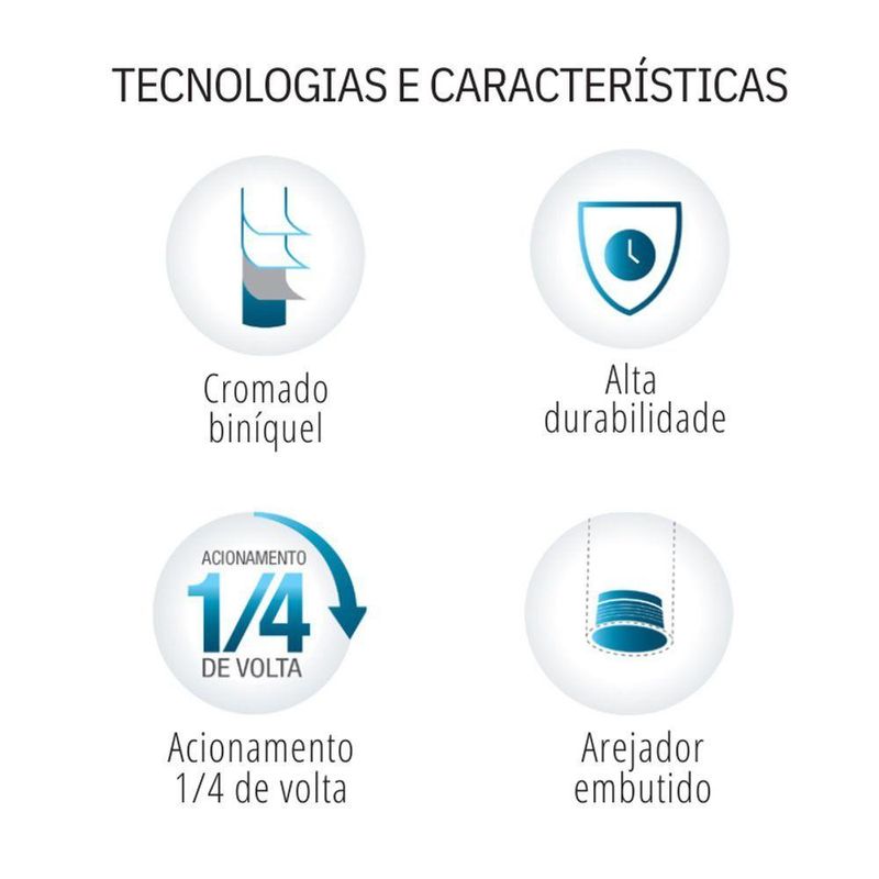 Design e qualidade para o seu banheiro.O principal benefício dessa linha é a sua resistência e funcionalidade durante o uso dos produtos.Com a torneira para banheiro você tem o conforto da água arejada para lavar às mãos a qualquer momento numa única alavanca. Esse produto possui um arejador embutido, que garante até 90% de economia de água ao misturá-la com o ar durante o uso.Acabamento cromado biníquel de alta durabilidade e maior resistência à corrosão: Conserva a beleza e o brilho do produto por muito mais tempo.Está esperando o que para garantir já a sua aqui!