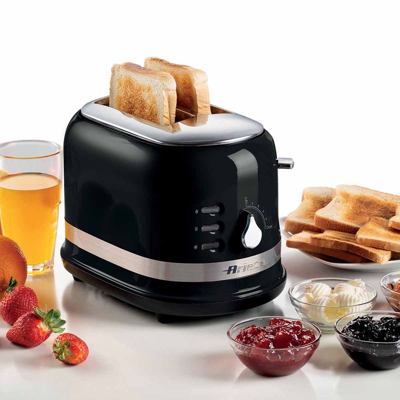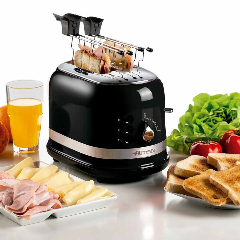 Design requintado, linhas harmoniosas e tostagem perfeita do pão. A torradeira elétrica Ariete Moderna está equipada com pinça para torrar perfeitamente o pão ou sanduíches recheados e também pode ser utilizada sem pinça graças à ejeção automática das fatias.