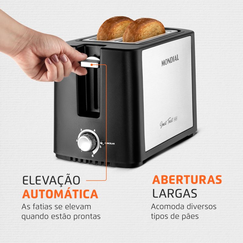 O Tostador de Pães Smart Toast Inox Mondial T-13 é ideal para quem adora pães crocantes e quentinhos! Possui aberturas largas para acomodar vários tipos de espessuras, 6 níveis de tostagem para você escolher o ponto de acordo com seu gosto, elevação automática e função cancelar. O design em inox garante elegância e durabilidade, deixando o momento do café da manhã ou aquele lanche da tarde muito mais saboroso. Saiba mais sobre o T-13 da Mondial: