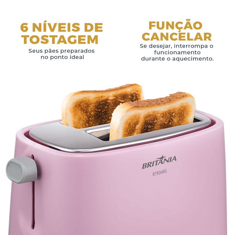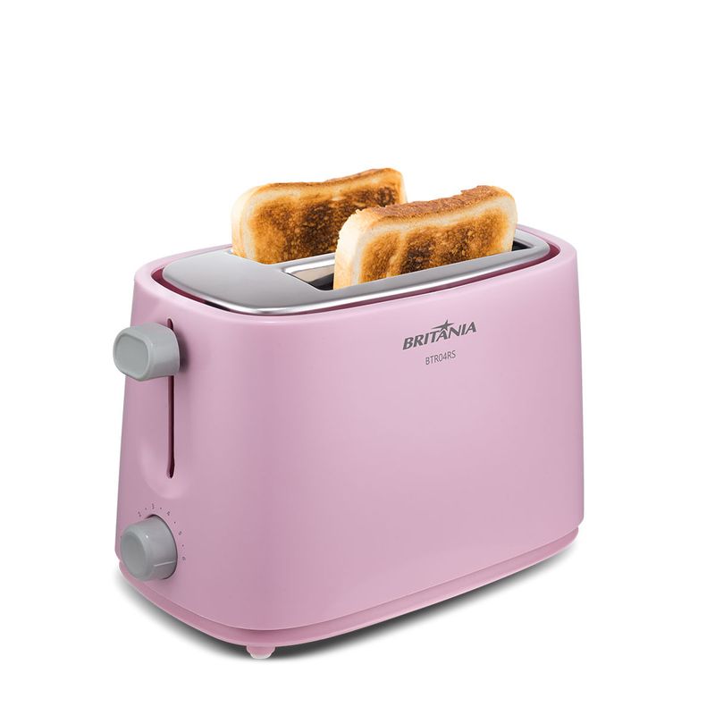Prepare deliciosas torradas com a Torradeira Rosa Britânia BTR04RS 6 níveis de tostagem 750W e faça do seu café da manhã um momento prático e gostoso!