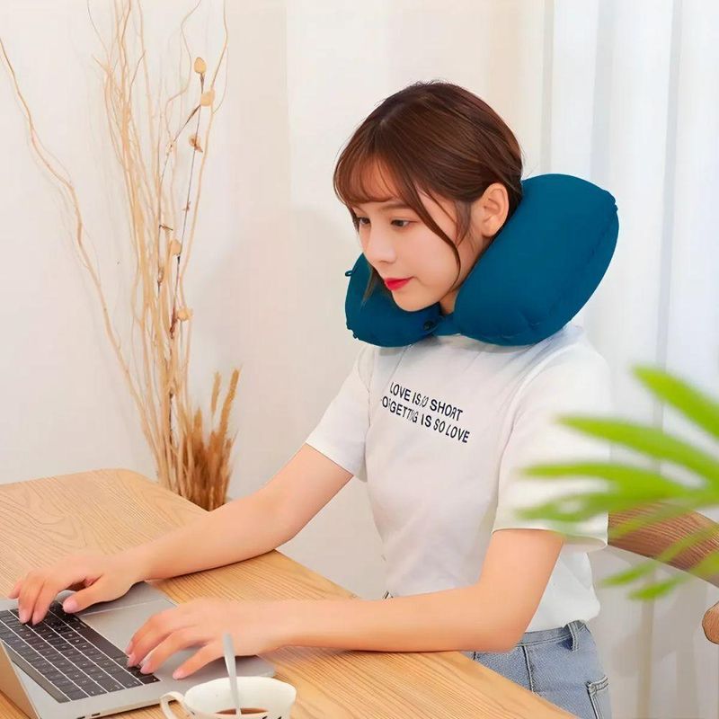 A Almofada Inflável em formato de U foi desenvolvida para oferecer suporte ergonômico ao pescoço e à cervical durante longos períodos sentado, seja em viagens, no trabalho ou momentos de descanso. Compacta, leve e com inflagem manual integrada, ela é ideal para quem busca conforto e portabilidade no dia a dia.