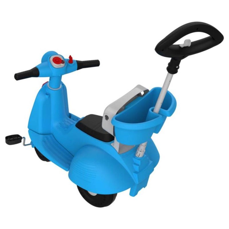 O Triciclo Banderetta® Passeio Pedal une charme retrô e diversão, permitindo que o adulto conduza com a haste direcionável no modo passeio ou que a criança pedale livremente no modo pedal. A transição entre as funções é fácil: basta travar o dispositivo roda livre e remover a haste, o cercado de proteção e o apoio para os pés.