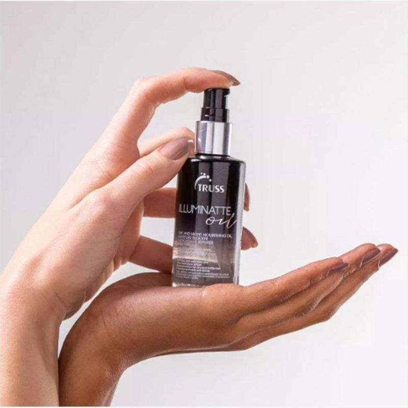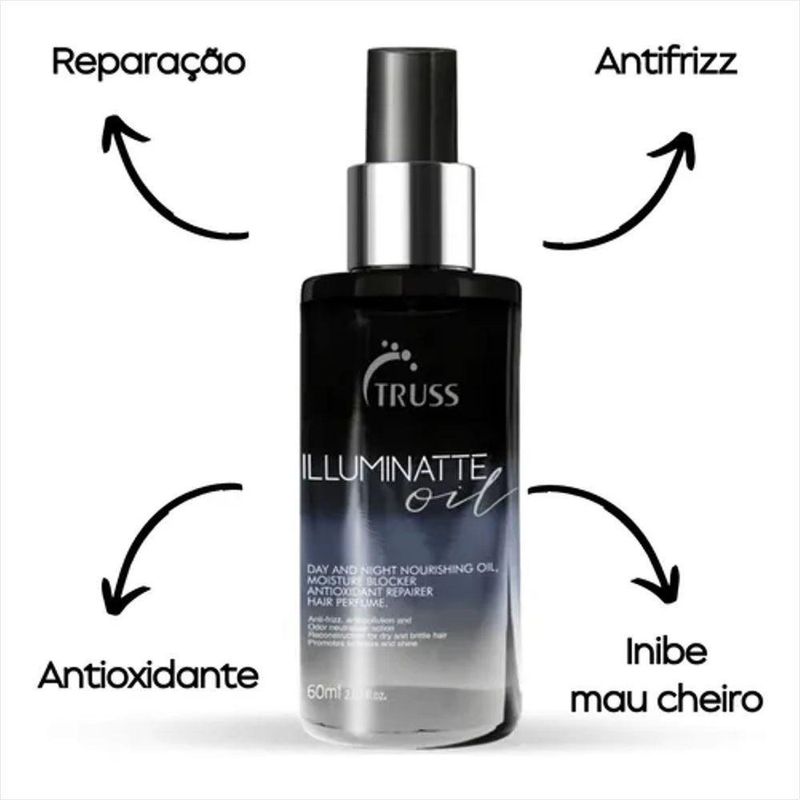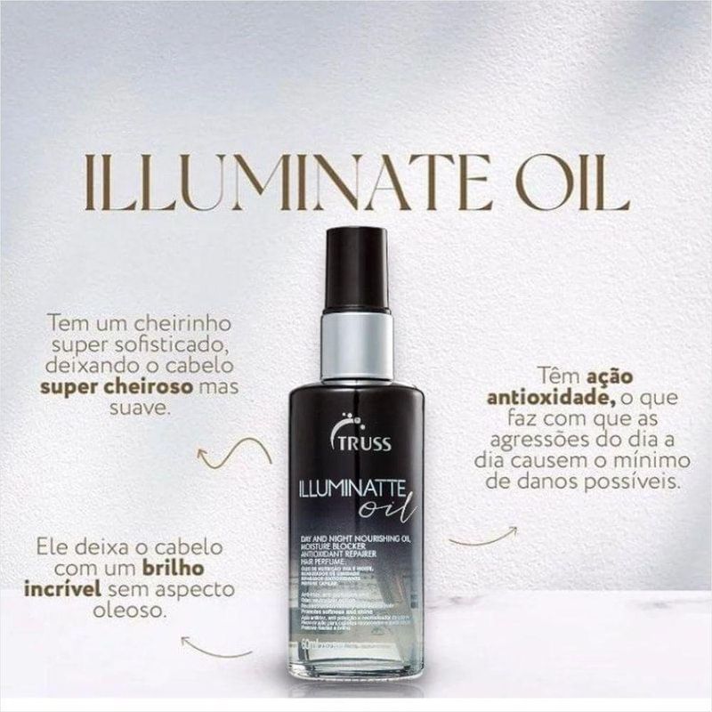 Truss Iluminatte Oil 60ml - O Poder do Brilho e Proteção para Seus FiosDescubra o Truss Iluminatte Oil, um finalizador inovador que transforma cabelos ressecados e quebradiços em madeixas saudáveis e radiantes. Com uma fórmula vegana e rica em ingredientes poderosos, este óleo capilar é a solução que você esperava para recuperar a vitalidade dos seus fios, proporcionando brilho intenso e proteção contra os danos do dia a dia.Ingredientes e ComposiçãoO Truss Iluminatte Oil é formulado com:Óleo de Amaranto: Conhecido por suas propriedades nutritivas, ajuda a restaurar a saúde dos fios e combate o ressecamento.Vitamina E: Um potente antioxidante que protege os cabelos contra os danos ambientais e promove a reparação das pontas.Éster de Macadâmia: Proporciona hidratação profunda e controle do frizz, deixando os cabelos mais disciplinados e macios.Além disso, sua composição conta com ingredientes como extrato de semente de chia, que nutre e fortalece os fios, e fragrâncias florais-frutais que garantem uma perfumação duradoura.Modo de UsarPara obter os melhores resultados, aplique uma pequena quantidade do Truss Iluminatte Oil nas palmas das mãos e distribua uniformemente ao longo do comprimento e pontas dos cabelos. Para uma hidratação intensiva, aplique uma quantidade generosa à noite e lave na manhã seguinte. Experimente também durante o dia para um toque extra de brilho e proteção.BenefíciosCom o Truss Iluminatte Oil, você desfrutará de:Ação Antifrizz: Diga adeus ao frizz e tenha cabelos alinhados e com movimento.Nutrição Profunda: Fios hidratados e saudáveis, com uma aparência revitalizada.Proteção Térmica: Protege os cabelos dos danos causados pelo calor de secadores e chapinhas.Durabilidade: Efeito prolongado de brilho e suavidade, com fragrância que dura o dia todo.IndicaçãoO Truss Iluminatte Oil é ideal para quem possui cabelos ressecados e quebradiços, buscando reparação, nutrição e proteção contra os danos diários. Perfeito para todos os tipos de cabelo que necessitam de cuidados especiais e um toque de brilho.Principais DúvidasÉ seguro para todos os tipos de cabelo? Sim! O Truss Iluminatte Oil é formulado para atender diferentes necessidades capilares, proporcionando resultados visíveis em todos os tipos de fios.Posso usar diariamente? Com certeza! Sua fórmula leve permite o uso diário, garantindo cabelos sempre bonitos e saudáveis.Sobre NósA Negabella é a sua loja de confiança, oferecendo produtos de beleza de alta qualidade. Trabalhamos com marcas renomadas como a Truss, sempre buscando inovação e praticidade para você. Se sua compra for um presente, não se preocupe! Podemos enviar a embalagem especial, basta nos informar após a compra. Não perca a oportunidade de transformar seus cabelos com o Truss Iluminatte Oil.