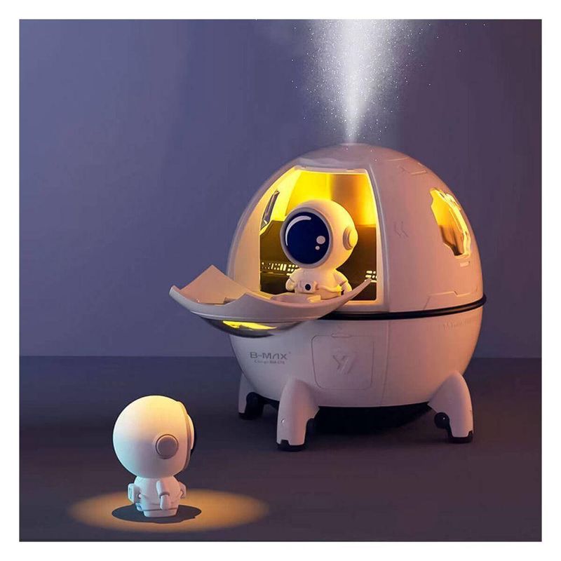 Umidificador Cápsula de Astronauta perfeito para usar em ambientes infantis, quartos, consultórios, clínicas... Com 7 cores mistas em Led quentes e suaves pode ser usado para cromoterapia auxiliando no relaxamento da criança através das cores, durante a noite. 2 Modos de trabalho com ou sem LED ligado. Capacidade de 220ml . Super silencioso e alimentado via USB-c .Itens Inclusos :Capacidade: 220ml Bivolt 110/220v Led com 7 cores mistas Alimentação Cabo USB-c Potência 10w Possui filtro Tempo máximo de funcionamento 7-8 horas ( uso intermitente )Itens Inclusos :1x Umidificador [Branco] 1x Cabo USB-C