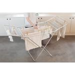 Ideal para quem não possui muito espaço dentro de casa e busca praticidade, o Varal Maxi otimiza o espaço do seu cômodo ao pendurar as roupas. Por ser produzido em alumínio, ele é leve e possui longa durabilidade. Além disso, não enferruja, mesmo em regiões litorâneas. Perfeito para ter na praia, por exemplo! Pode ser carregado de lá para cá e, quando não estiver utilizando, basta dobrá-lo e guardá-lo no cantinho da cozinha. As ponteiras em seus pés, produzidas em polipropileno, ajudam a proteger o piso de possíveis arranhões. Ideal para quem lava uma grande quantidade de roupas, ele possui 07 varetas resistentes no centro e duas abas com 04 varetas cada, comportando 13,25m ou 20kg de roupas úmidas distribuídas uniformemente. Secá-las ao ar livre, ao invés da máquina, ajuda a preservar as fibras do tecido e prolongar a vida útil. Assim, você reduz o desgaste e mantém a aparência delas por mais tempo; é a maneira mais barata e ecológica!