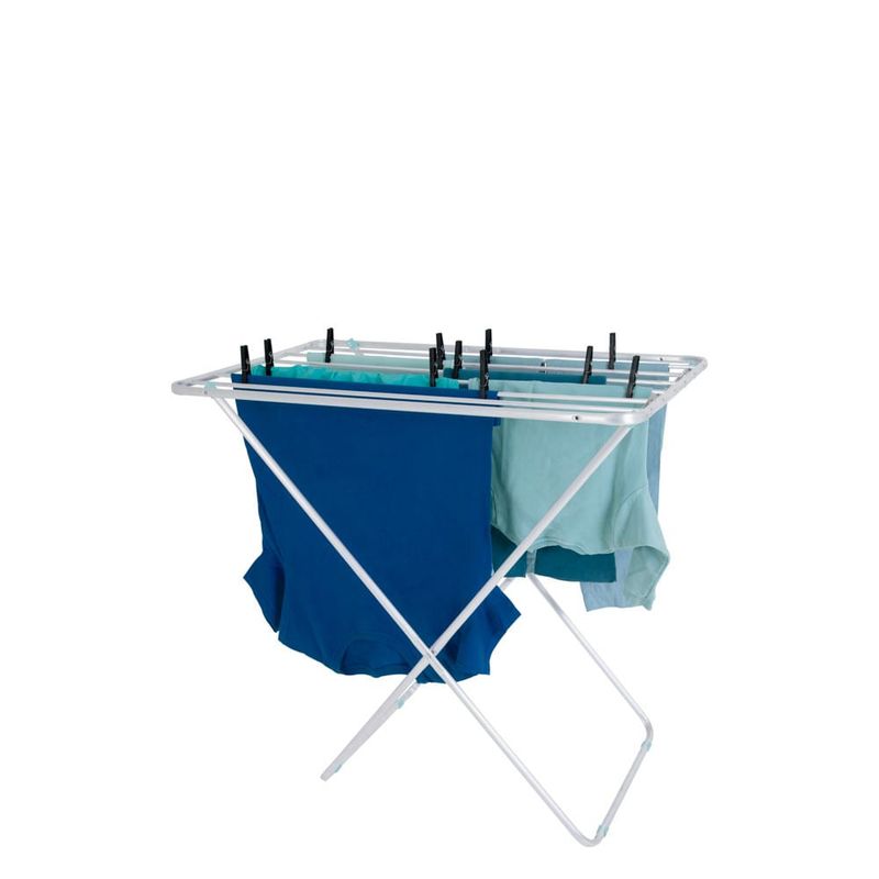 O Varal de Chão Alumínio é a maneira mais barata e ecológica de secar roupas. Prático e funcional é perfeito para quem não tem muito espaço em casa ou apartamentos. Sua estrutura resistente foi desenvolvida em tubo de alumínio, que garante sua durabilidade. Como não enferruja é ideal para regiões litorâneas. Pode ser carregado facilmente para onde você preferir e quando não estiver utilizando, basta dobrá-lo e guardar em qualquer cantinho. Possui seis varetas com capacidade para até 6,95m de roupa ou 16Kg distribuídos. Suas peças plásticas são de polipropileno, incluindo as ponteiras em seus pés que ajudam a proteger o piso. Com o Varal de Chão Alumínio Mor as tarefas do dia a dia ficarão muito mais simples.