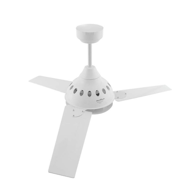 O Ventilador de Teto Britânia Cancun BVT01B une eficiência, conforto e versatilidade para manter seu ambiente sempre agradável. Com 131W de potência e 3 pás em plástico resistente, garante fluxo de ar constante e silencioso, ideal para o dia a dia em casa ou no trabalho.Mais que um simples ventilador, ele é 3 em 1: funciona como ventilador, exaustor e luminária para duas lâmpadas, trazendo praticidade e aproveitamento total em um único produto. São 3 velocidades baixa, média e alta que permitem ajustar a ventilação conforme a necessidade, seja para refrescar ou eliminar odores indesejados.Seu acabamento branco discreto combina facilmente com diferentes estilos de decoração, mantendo a harmonia do espaço. Além disso, sua estrutura robusta e materiais de qualidade oferecem durabilidade e confiança no uso contínuo.Com baixo consumo de energia, alta performance de vento e instalação prática, o Ventilador de Teto Britânia Cancun é a solução completa para quem busca conforto térmico, eficiência e design em um só produto.Especificações técnicas
