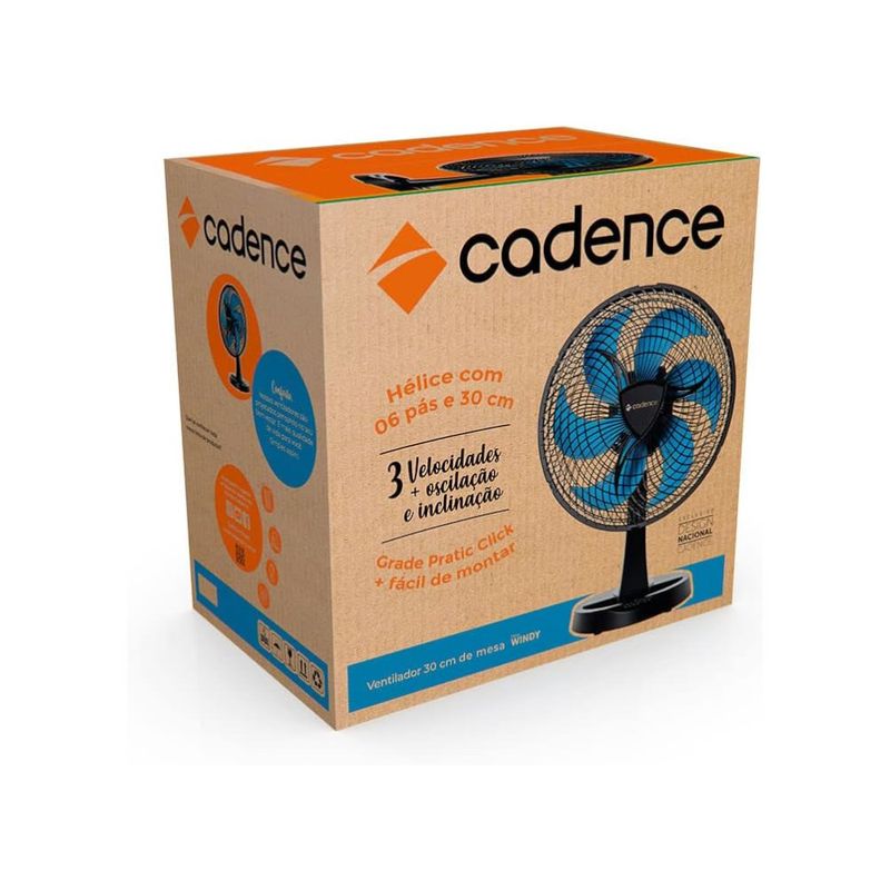 Ventilador Cadence New Windy 6 Pás Preto e Azul VTR560