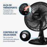 ALÇA DE TRANSPORTE + PORTA-FIO: Além do design compacto, a alça traseira permite que o ventilador seja transportado entre os cômodos da casa com facilidade. Com o porta-fio embutido, você armazena o fio elétrico dentro do aparelho após o uso.
