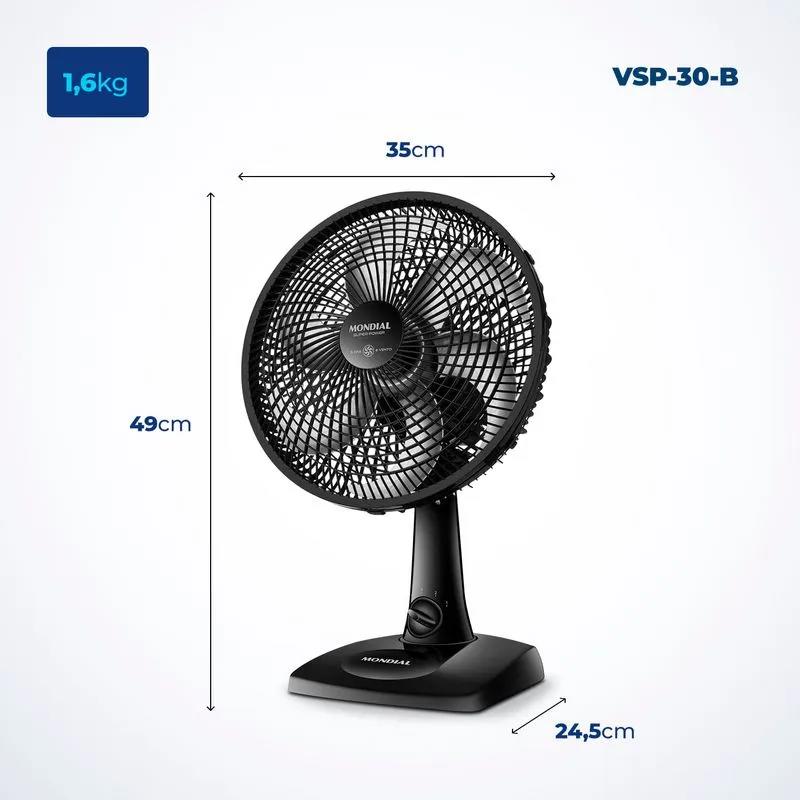 Ventilador de Mesa Mondial 6 pás 30cm Preto VSP-30-B
