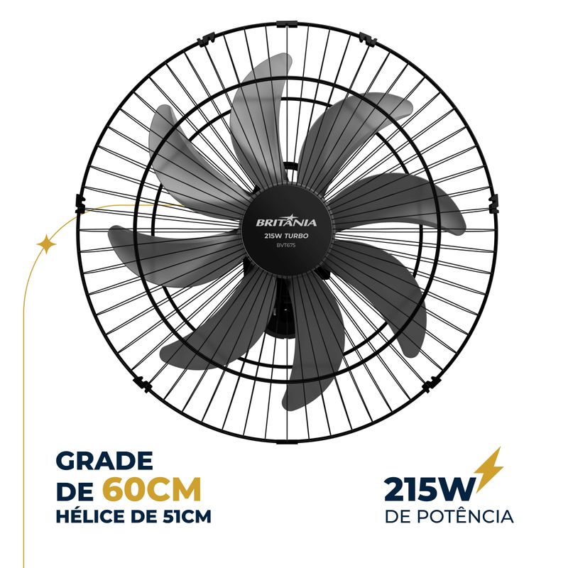 Para dias mais agradáveis ao refrescar seu ambiente com a máxima eficiência, conte com o Ventilador de Parede Britânia Turbo Maxx Force 215W BVT675!