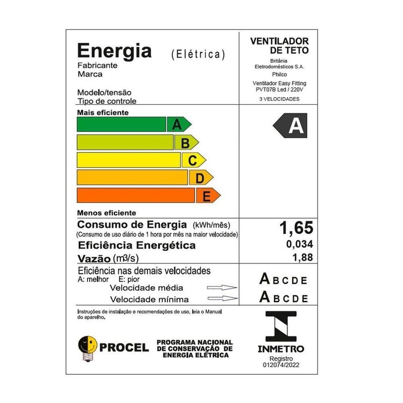 Ventilador De Teto Philco Silencioso 145W Easy Fitting PVT07B 220V