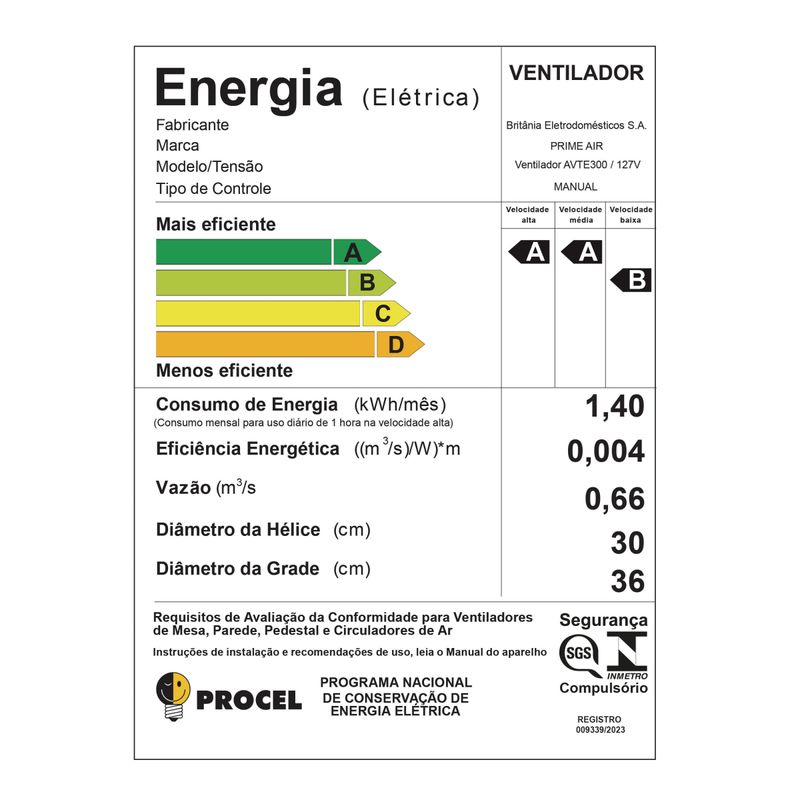 Com uma grade de 36cm, este Ventilador oferece um desempenho excepcional em um design moderno e prático. Ele possui 3 velocidades - suave, moderada e intensa - ajustáveis de acordo com a sua necessidade.