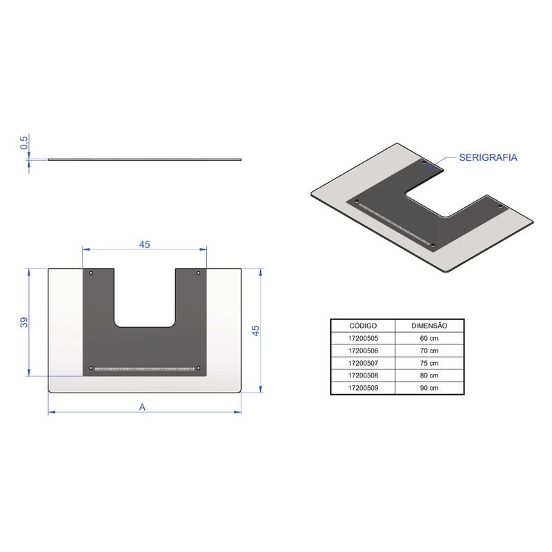 Sua aplicação original é destinada às coifas de parede vidro reto atuais das marcas Fogatti, Nardelli e Terim.
