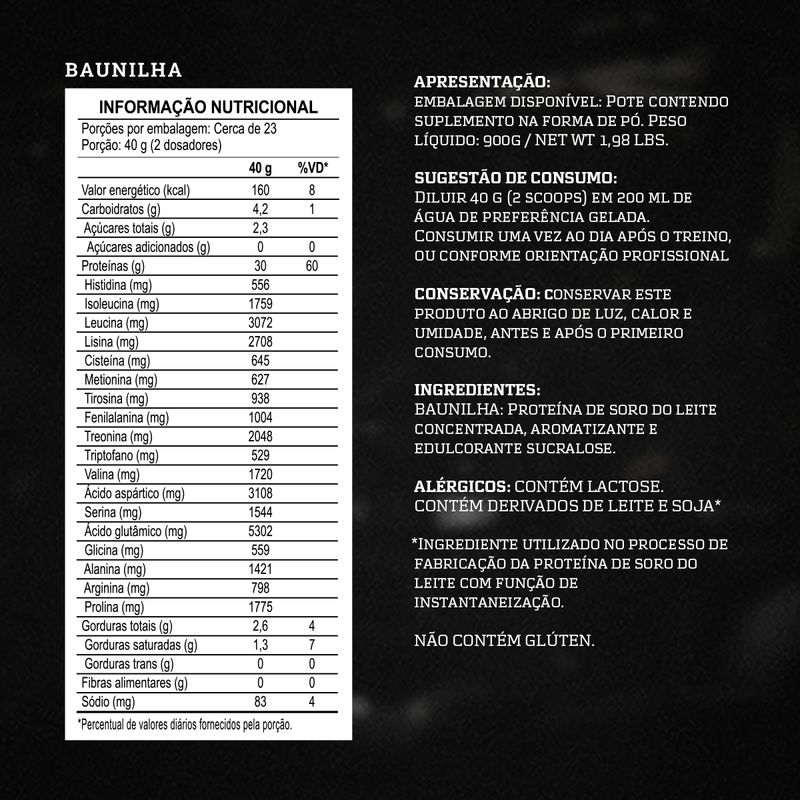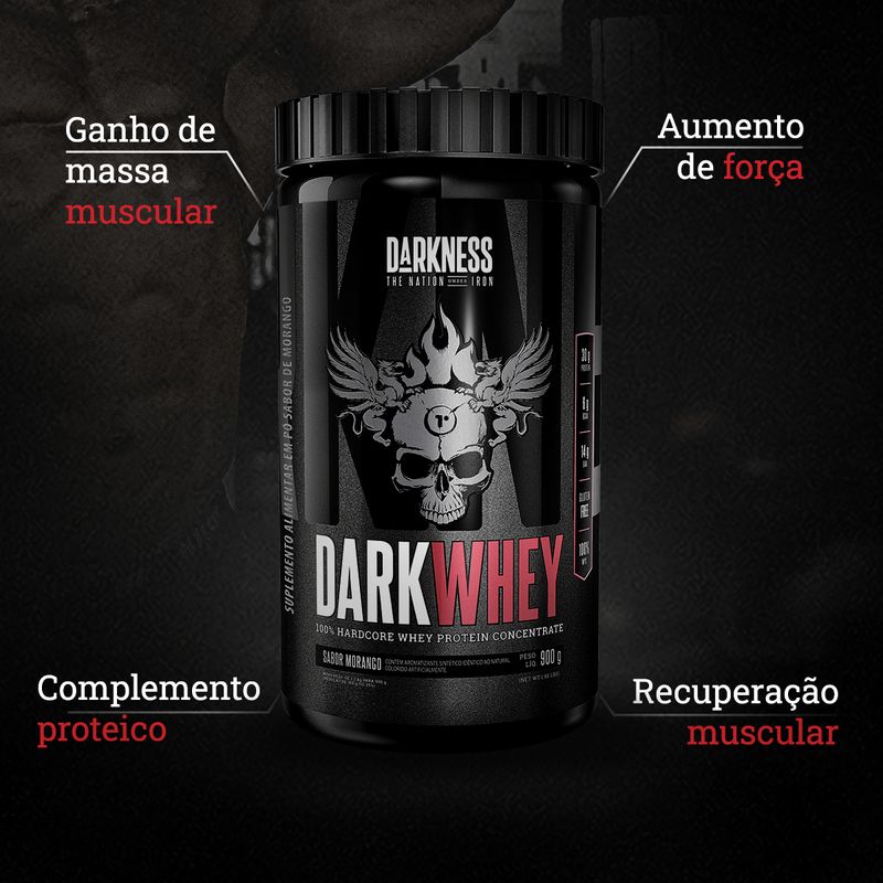 A alta tecnologia de produção Darkness apresenta mais um aliado para os atletas e praticantes de musculação intensa.Dark Whey 100% é um suplemento proteico de alta qualidade, que promove elevada oferta de aminoácidos essenciais de forma prática e saborosa. Por ser um produto estritamente proteico, sem adição de outros nutrientes, pode ser utilizado para modular a ingestão diária de proteínas dos atletas de acordo com suas necessidades, ou seja, consumido puro ou combinado com outros ingredientes.