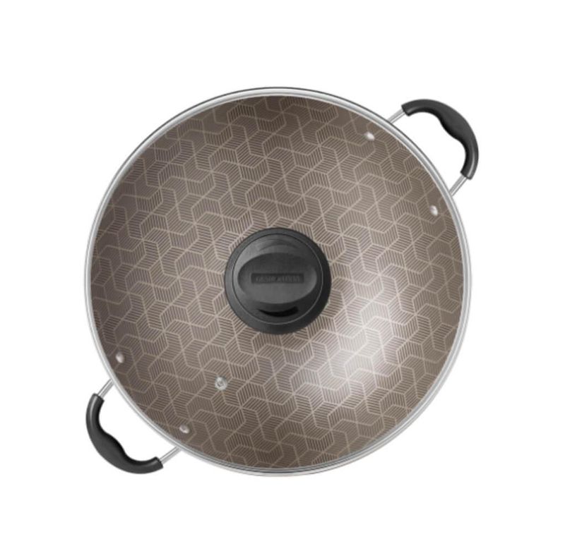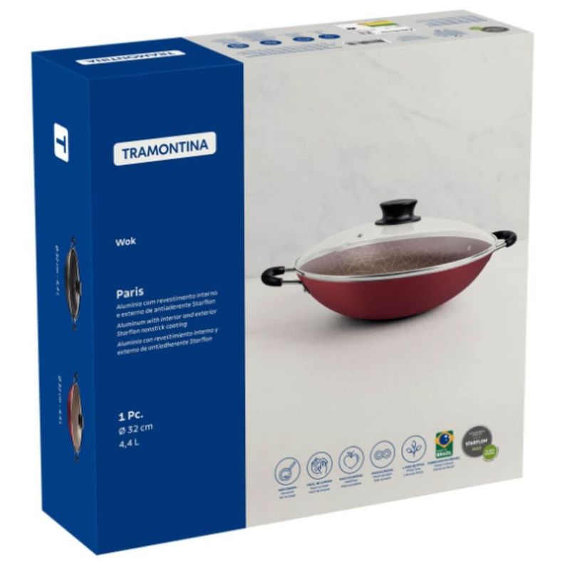 A wok Tramontina Paris em alumínio com revestimento interno e externo em antiaderente Starflon Max vermelho com tampa de vidro 32 centímetros 4,4 litros é indispensável para quem ama cozinhar com praticidade, sem abrir do mão estilo. É produzida em alumínio com revestimento interno e externo de antiaderente Starflon Max, características que juntas, proporcionam um cozimento rápido e uniforme dos alimentos e evitam que eles grudem em sua superfície. Ela vem com tampa de vidro temperado e para sua segurança, tem alças em baquelite antitérmico e pegador em nylon, dois materiais que não aquecem e oferecem um melhor manuseio. Além de todas essas características, ela é muito fácil de lavar, pois pode ir a máquina de lavar louças. Escolha Tramontina e veja sua cozinha ser transformada!