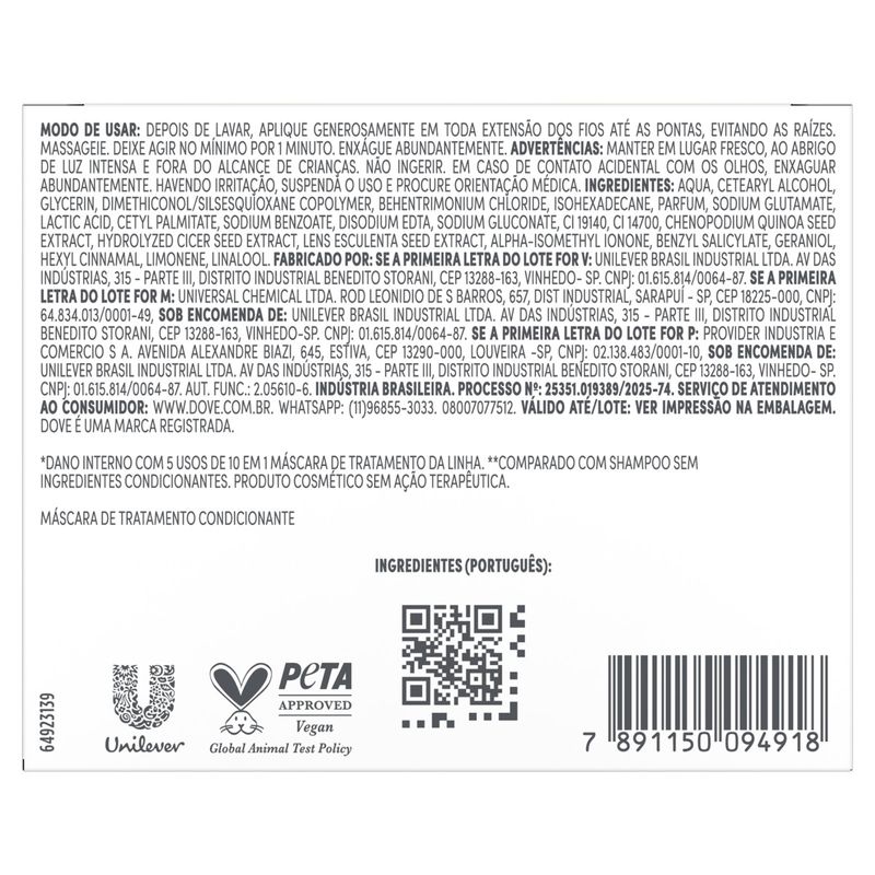 Máscara de tratamento DOVE Reconstrução + Aminoácido Caixa 270g