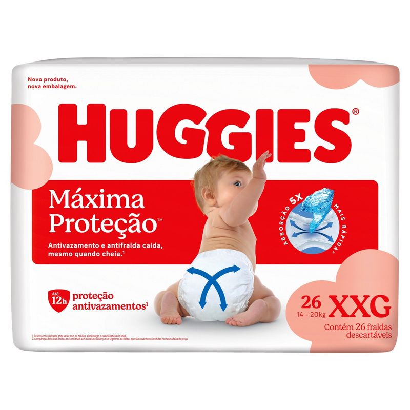 Fralda Descartável HUGGIES Máxima Proteção XXG com 26 Unidades