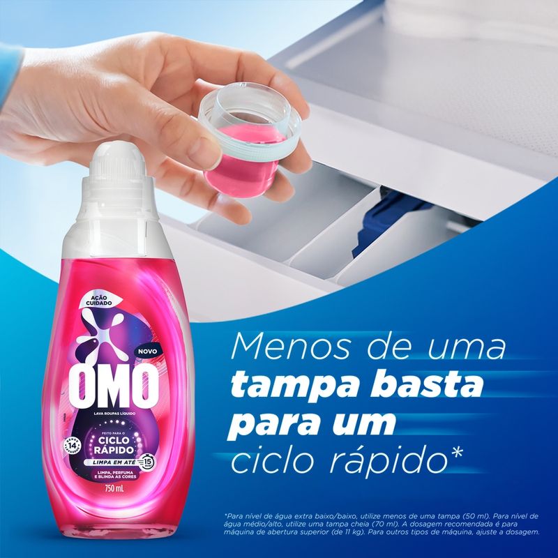Lava Roupa Líquido OMO Ciclo Rápido Ação Cuidado 750ml