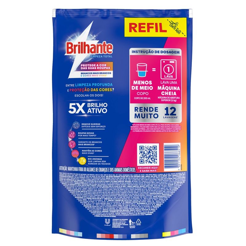 Lava Roupa Líquido BRILHANTE Limpeza Total 900ml Refil Econômico