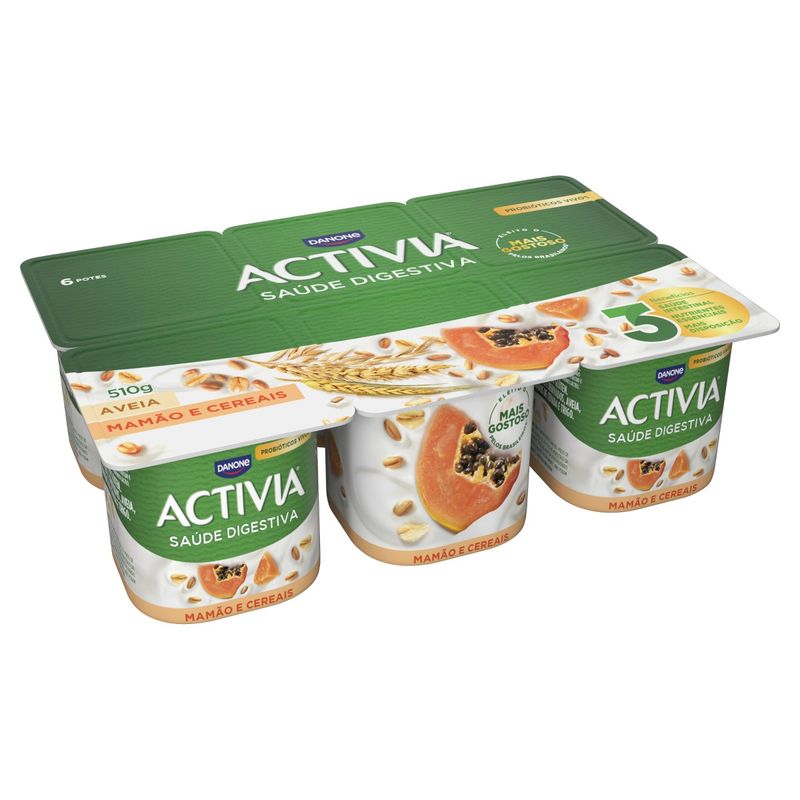 Leite Fermentado Integral Aveia + Mamão e Cereais ACTIVIA Bandeja 510g 6 Unidades
