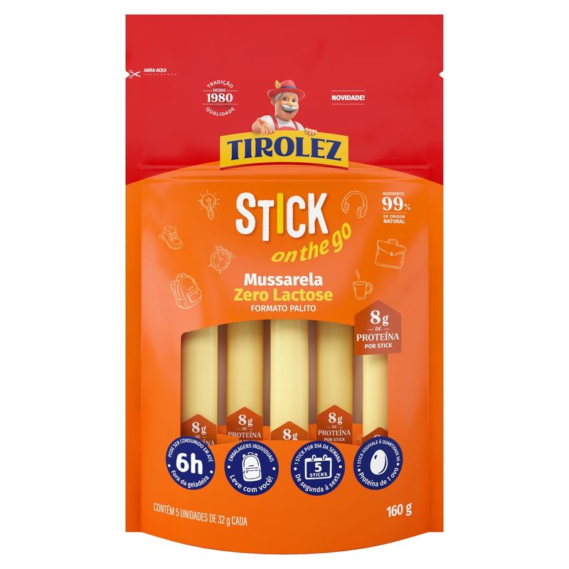 Queijo Mussarela TIROLEZ Stick on Thego Zero Lactose 160g
