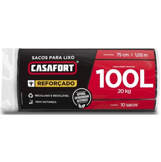 Saco para Lixo CASAFORT Preto com 10 Unidades 100L